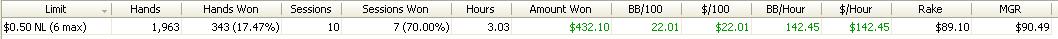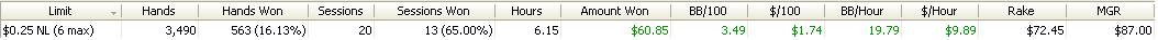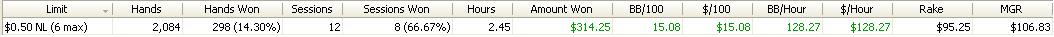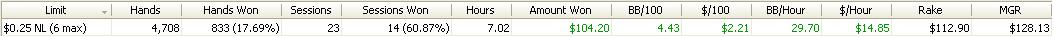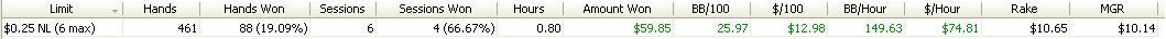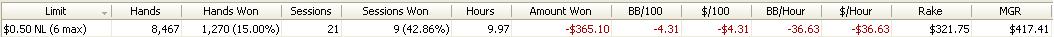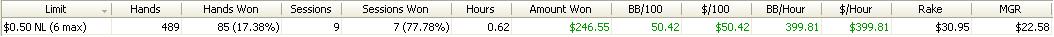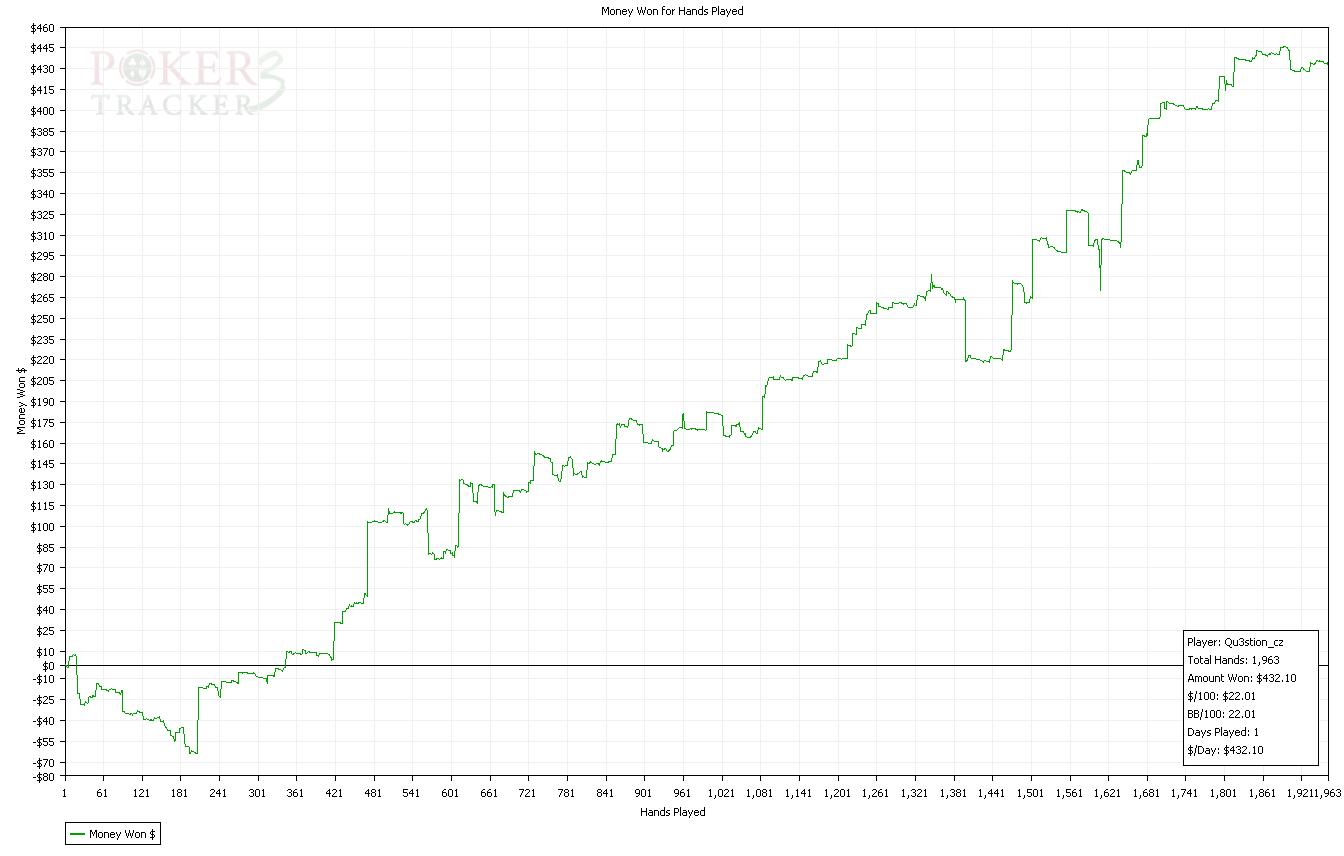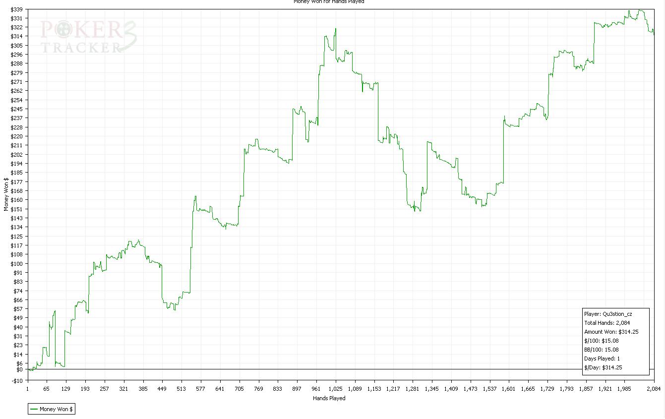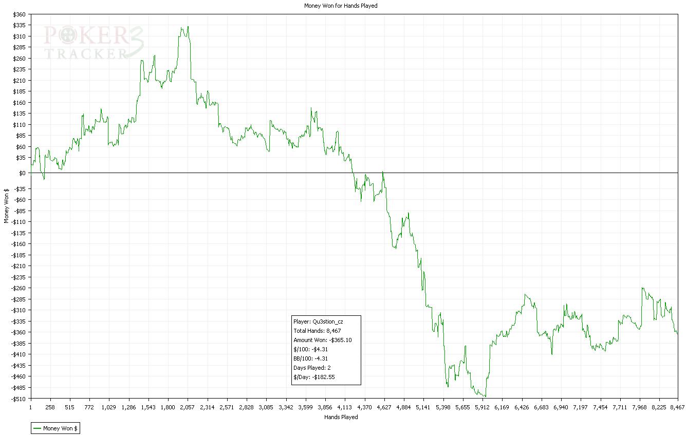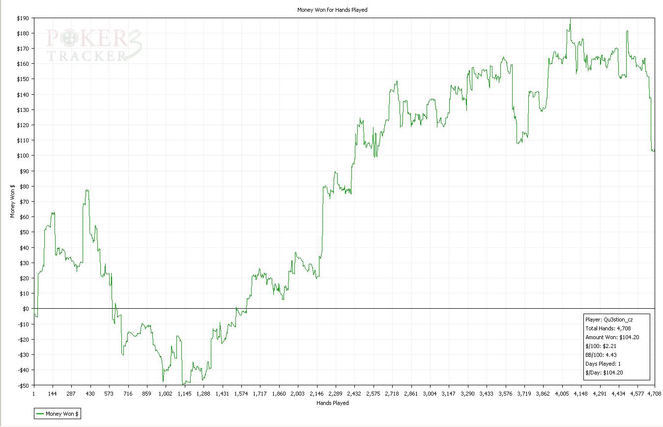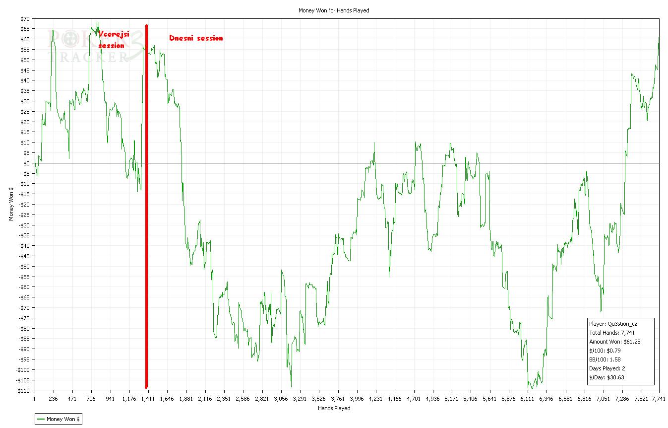 Dnesni session byla fakt epic.Sem rad ze sem to vytahl do mirnyho plusu,ale cca 6300 hands je sick :)Snad udelam neco s tou winrate...tohle je hruza.